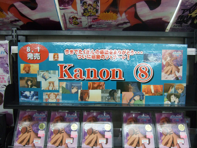 7月31日、京アニ版KanonのDVD最終巻となる「Kanon 8巻」(AA)が発売されました。ゲームシティのPOPでは「今までたくさんの感動をありがとう・・・ついに感動のフィナーレ!」とされていました。他、DVD「NEON GENESIS EVANGELION DVD-BOX ’07 EDITION」(AA)、メガハウス「アートワークスモンスターズ ~戯画~GIGA 初代ゴジラ」(AA)発売等をまとめて。