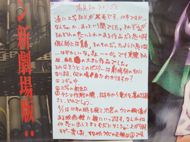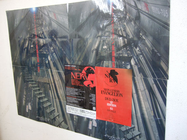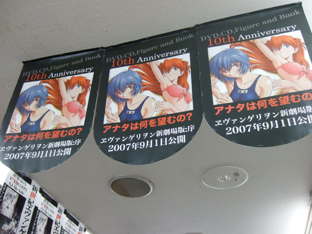 天井には水着のアスカとレイの新劇場版公開告知の垂れ幕。
