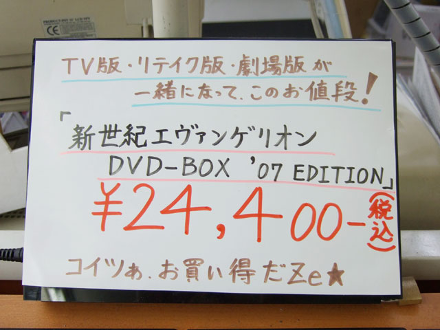 ゲームシティでは他にも、DVD「NEON GENESIS EVANGELION DVD-BOX ’07 EDITION」(AA)も発売されていました。