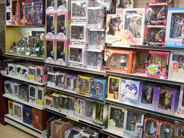 右の2枚の画像は、その移転した2Fでのショウケースや美少女フィギュア売り場の様子。