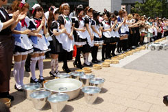 そして 秋葉原の多数の店舗のメイドさん達が”打ち水っ娘”として整列。