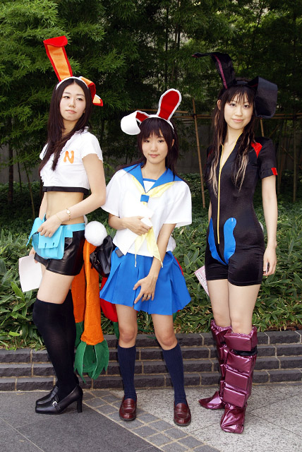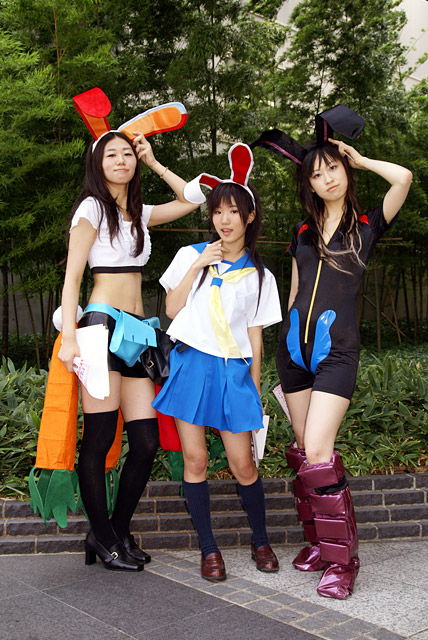 月面兎兵器ミーナのコスプレで一般参加されていたのは、画像左からコスプレイヤー向けSNS秋桜人の公式コスプレイヤーの樹里亜さん、枢萌枝さん、花咲トキさん。