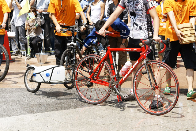というアナウンスの後、打ち水用の水を積んだ何台もの自転車が出発してゆきました。