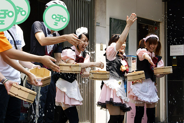 「13時20分と40分に、秋葉原の何箇所かでも 打ち水を行うので 打ち水っ娘達を探してください!」