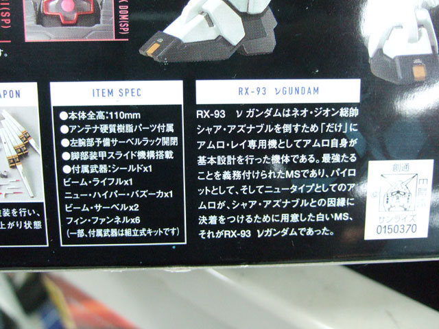 ■ 付属武器:シールド×1、ビームライフル×1、ニュー・ハイパー・バズーカ×1、ビーム・サーベル×2、フィン・ファンネル×6