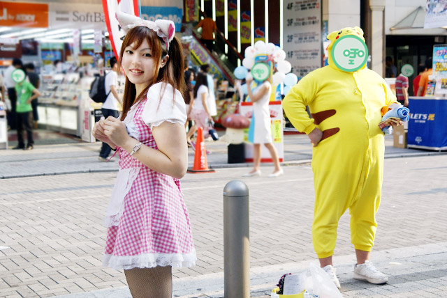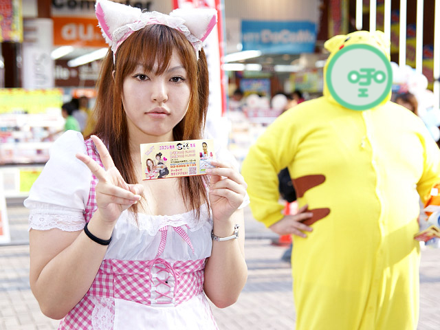 8月5日のアキバは 告知活動を兼ねた撮影会よりも、暑さがライブを盛り上げてくれるためかストリートライブが盛んだったようです。 GANG BANG PARTY、新川あまねさん、中野アニソン燃/萌ギター研究所 他、ストリートライブを中心に お伝えします。画像はコスプレ焼肉 OK牧場の従業員の方。ピカ○ューの方は明らかに この日のアキバで断トツで猛暑を満喫しています。