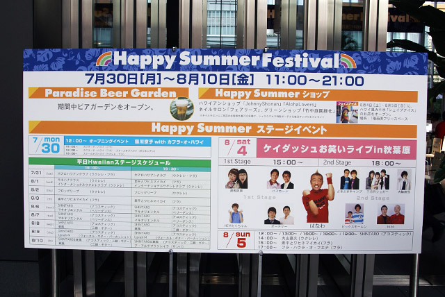 7月30日〜8月10日までの期間限定で秋葉原UDXに、HappySummerFestivalとして、ステージイベントや、ハワイアンショップが設置されていました。