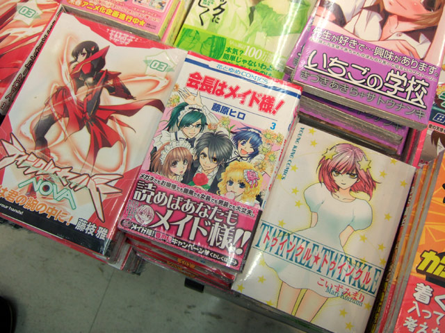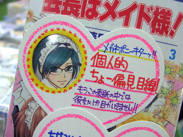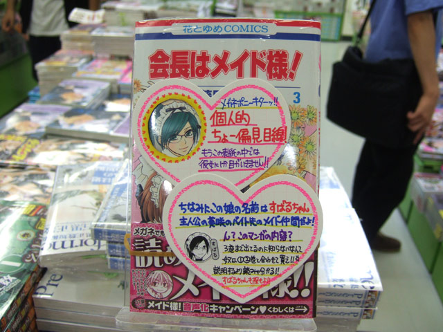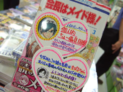 白泉社「会長はメイド様! 3巻」(AA)が4日頃からアキバで発売しています。メロンブックスでは、「メガネポニーキターッ!!個人的ちょー偏見目線!!もうこの表紙の中では彼女にしか目がいきません!!」として、表紙のイラストをすばるだけを見える形で掲示していました。他、C-Works「バイブルブラック 佐伯香織」(AA)のサンプル展示等、8月5日のよろずネタを。