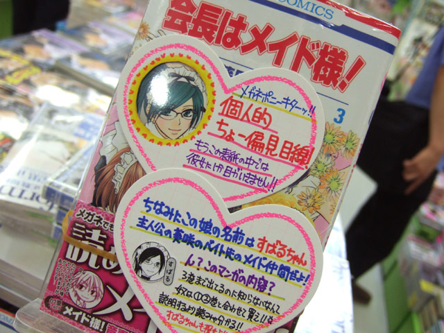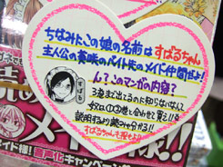 下に付けられたPOPでは「ちなみにこの娘の名前はすばるちゃん 主人公の美咲のバイト先のメイド仲間だよ!ん?このマンガの内容?3巻まで出てるのに知らないなんて奴は�@�A巻と合わせて買え!!説明するより読みゃ分かる!!すばるちゃんも探せよ!!」と書かれていました。