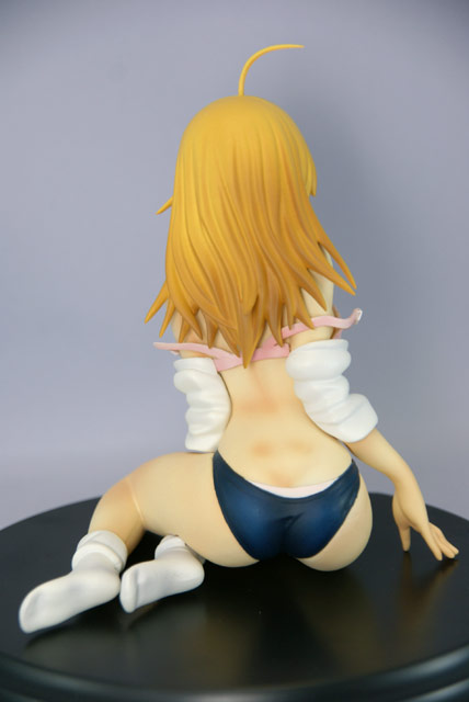これは、以前WHF有明16で、ガレキサンプル展示もあった、「一騎当千」の孫策伯符を、なぜか半脱ぎの体操服姿で立体化したもので、Amazonの商品説明によると「グリフォン”R-Line”より、一騎当千シリーズが遂にPVC完成品で登場!脱ぎかけの体操着&ブルマと脱がし可能なブラを是非ご堪能ください!」と紹介されています。