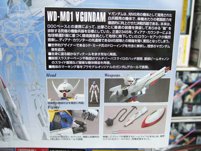 これは、以前サンプル展示もお伝えした、アニメ「∀ガンダム」の主人公機「ターンエーガンダム」を立体化した100個目のMGとなるもので、掲示されていたPOPの商品説明によると
