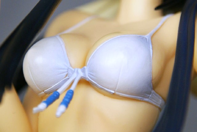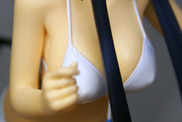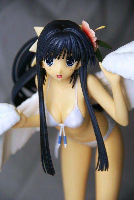 これは、以前キャストサンプルレビューをお伝えしたこともある、「ToHeart2」や「ToHeart2 Another Days」に登場する「草壁優季」を白ビキニ姿で立体化したもので、コトブキヤの商品説明によると「大人気恋愛シミュレーションゲーム「ToHeart2」の続編「ToHeart2 AnotherDays」より、1/7スケール水着シリーズとして「草壁優季」が登場!頭にハイビスカスをつけたゴキゲンなワンシーンを立体化!後ろ髪をリボンで結んだ髪型は、普段の彼女とは違ってとても活動的な印象を与えます。また、白ビキニによって彼女のすばらしいプロポーションを余すことなく表現しています。制服姿とは全く違う彼女の新たな一面を是非ご覧下さい。製品版にはベースに取り付ける背景が付属いたします。」と紹介されています。