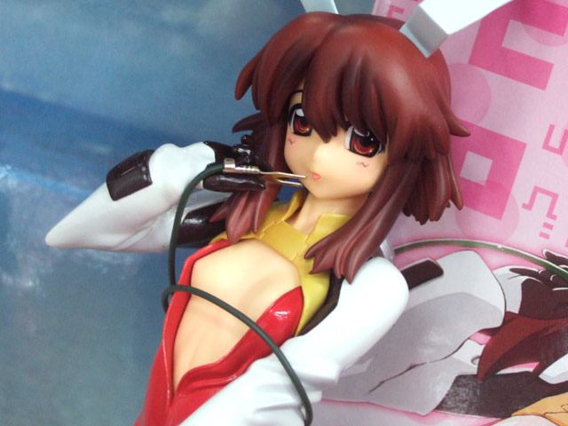 これは、以前キャストサンプルや、PVCサンプルをお伝えした、「まほろまてぃっく」の原作者でもあるぢたま某氏著書のマンガ「ファイト一発!充電ちゃん!! ぷらぐ 絶縁体スーツVer. 」(AM)のヒロイン「ぷらぐ・クライオスタット」を、ぢたま某氏の描き下ろしイラストを元に立体化したもので、コトブキヤの商品説明によると、「元気をなくしてしまった人々に、電力を使って元気を注入する不思議なOL。平行世界からやってきた彼女たち「充電ちゃん」は、その姿を人々に見られることは無く、日々ノルマをこなしていくのだった・・・。月刊コミック ガムで好評連載中。『まほろまてぃっく』の「ぢたま(某)」が贈る新たなストーリー『ファイト一発!充電ちゃん!!』より、ドジで落ちこぼれだけど、誰よりも熱いハートを持っているヒロイン「ぷらぐ・クライオスタット」を、ちょっぴりエッチな作業服(インシュレイタースーツ)姿で立体化です!!」と紹介されています。