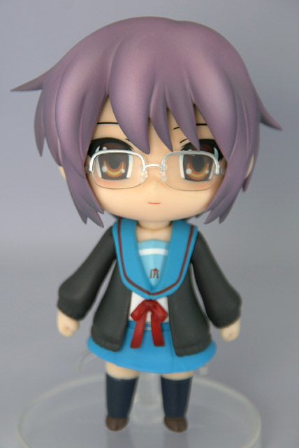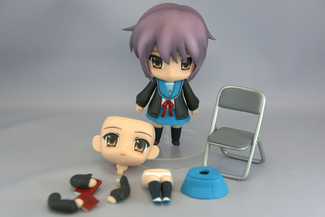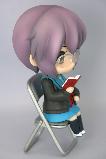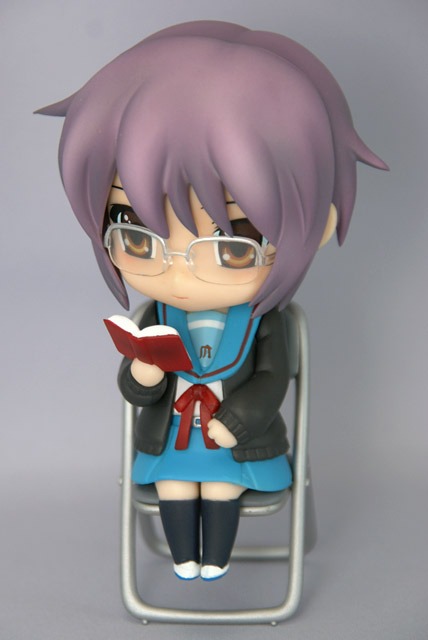 グッスマの商品説明によると「『涼宮ハルヒの憂鬱』ねんどろいど化計画、2人目は「長門有希」が登場です! 普段の無表情に加え、微笑む顔パーツが付属します。もちろんめがねパーツは着脱可能で、めがね属性の方もそうでない方も満足必至。さらに部室内での読書シーンを再現するため、パイプ椅子と着席用腰パーツが付属するボリュームたっぷり仕様です。 」と紹介されています。