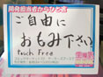他、POPで『ご自由におもみ下さい touch Free』『目指したのは「柔らかさ」ではなく「満足感」でした』『椅子の背もたれにたてかけて背中で触れた時の「感動」』『この製品は「低反発」でも「抱き枕」でもありません 「生意気反発枕」なのです・・・』などとも掲示していて。実際触り放題だった見たいですが、アキバOSさんによると「5時間で計339揉み」だったみたいです。