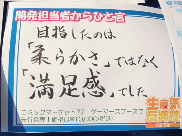 関連:なんという質感!なんという生意気娘!生意気反発抱き枕先行おぱーい/白昼堂々ゲーマーズ本店前で枕営業 生意気反発枕「おさわり会」開催!/生意気反発枕 キャラクターグッズに衝撃の新乳星登場! | コミックマーケット72 ゲーマーズブース案内