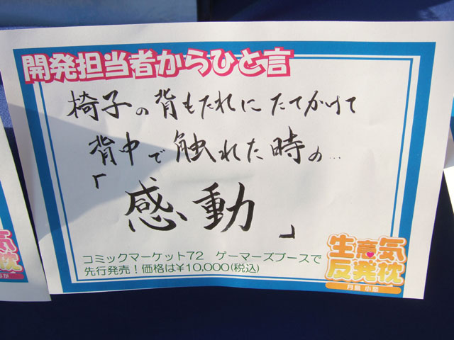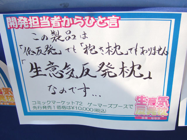 ・生意気反発枕 キャラクターグッズに衝撃の新乳星登場! | コミックマーケット72 ゲーマーズブース案内
