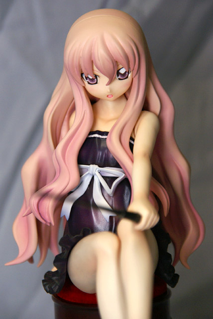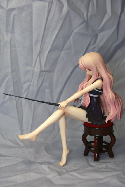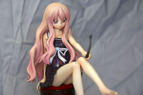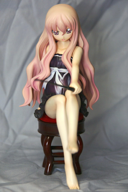 これは、アニメ第2期も開始された「ゼロの使い魔」のヒロイン「ルイズ」を、イスに座って駄犬をなじっているようなポーズで立体化したものです。