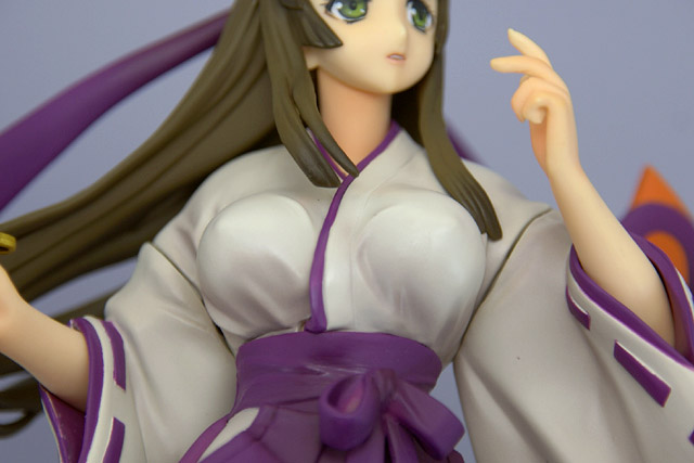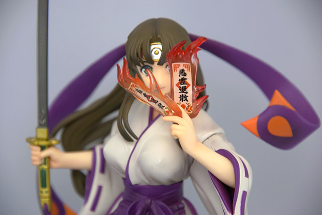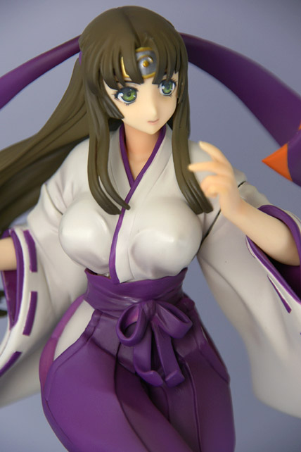 これは、クイーンズブレイドのキャラで、武者蹴りポーズが有名(?)な「トモエ」を立体化した、「エクセレントモデルCORE 武者巫女トモエ」(RA)のホビージャパンのイベント限定販売品カラーのものです。