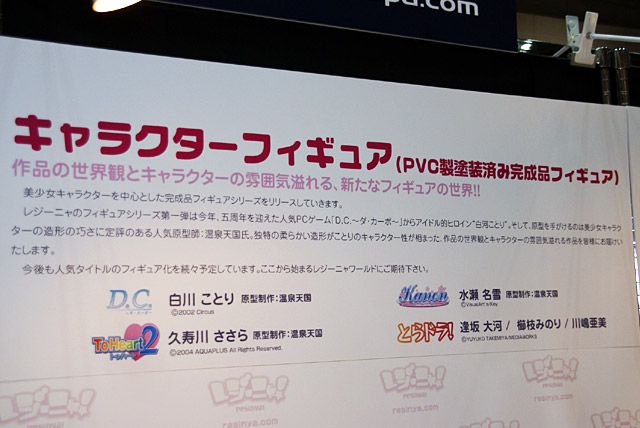 2007年8月12日に開催されたワンフェス2007夏では、コスプレ衣装等で知られるCOSPAが、フィギュア&ドールの販売を開始するらしく、新ブランド「レジーニャ!」の発表と、フィギュア原型やサンプルなどを展示していました。