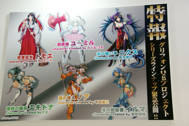 2007年8月12日に開催されたワンフェス2007夏のグリフォンエンタープライズでは、完全に全裸の「孫策伯符 〜濡れ髪の伯符〜」、「孫策伯符 〜リペイント版赤ブルマ日焼けVer.〜」、「関羽雲長 〜チャイナドレスVer.〜」等、恒例(?)の一騎当千の新作の他、「クイーンズブレイド 光明の天使 ナナエル」等も展示されてました。全体的に肌色率が高い印象でしたw