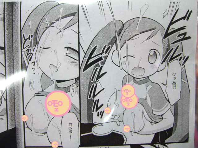 乳にはさんだ棒から「ひゃあ!?」とぶっかけられたり「ひゃああっ」と2ヶ所同時攻めされちゃったりされていますw