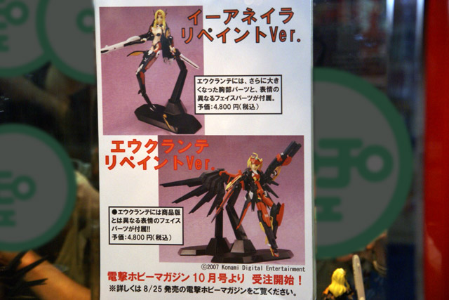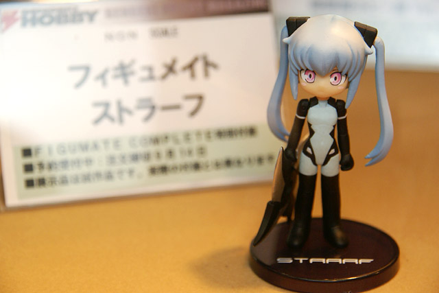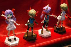 2007年8月12日に開催されたワンフェス2007夏の、今までお伝えしたメーカーブース以外のメーカーブースの様子を、6回に分けてお伝えします。こちらでは、タキコーポレーション、電撃HOBBY、トイズ・プランニング、とらのあな、ぴっころ堂、ペーパームーン、ボークスの計7ブースの様子をお伝えします。画像は「電撃G’sマガジン付録 ななついろ★ドロップス 秋姫すもも」