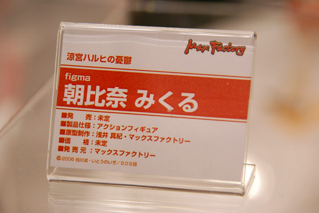2007年8月18〜19日に開催のC3×HOBBY キャラホビ2007の、会場の様子をフォトレポートとしてお伝えします。画像はバンプレストブースで、定期的に特設ステージに出演されていた、カードビルダーの「レイコ」と「キャシー」のコスプレをしたコンパニオンさん。他、バンダイブースでの色々な新作や、1/1スコープドックの展示、figma 超勇者ハルヒのサンプル展示等も。