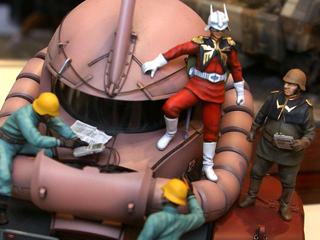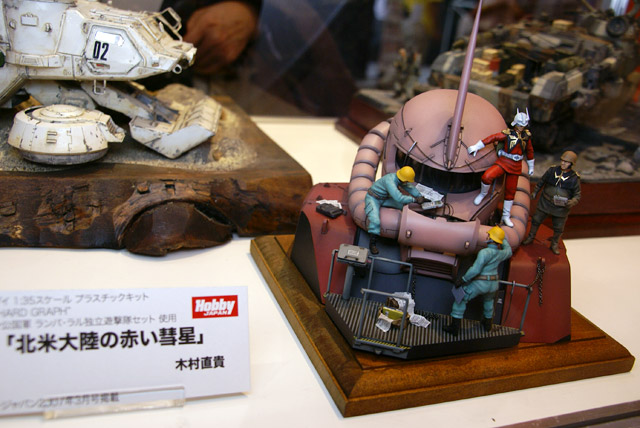 2007年8月18〜19日に開催されたC3×HOBBY キャラホビ2007ホビージャパンブースでは、ホビージャパン本誌等に掲載されたガンプラ等の作例の実物を、数多く展示していました。その作品等を、電撃ホビーマガジンブース同様、フォトレポートとしてまとめてお伝えします。画像は木村直貴氏の「ランバ・ラル独立遊撃隊セット」使用の作例「北米大陸の赤い彗星」。