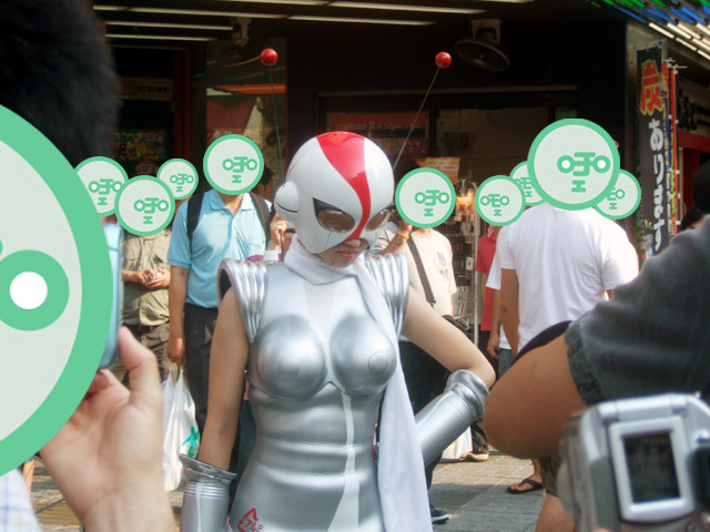 夏に水着は自然ですが、それがアキバの駅前だとこうなります。
