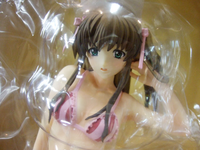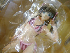 これは、以前無彩色原型レビューをお伝えし、ワンフェス2007冬でサンプル展示もあった、アニプレックスxハピネットxアルターのコラボ企画商品第2弾となり、「焼きたて!ジャぱん」のヒロイン「梓川月乃」を、第1弾のパンタジア制服姿に続き、、水着姿で立体化したもので、ハピネットの商品説明によると「制服Ver.に続いて健康的に色っぽい水着Ver.が登場! 最強の3社コラボによる、『焼きたて!!ジャぱん』のヒロイン月乃の水着Ver.が登場。設定にはないセクシーな水着を着用し、健康的な色気溢れる月乃は、目が離せないほど魅力的です!」と紹介されています。