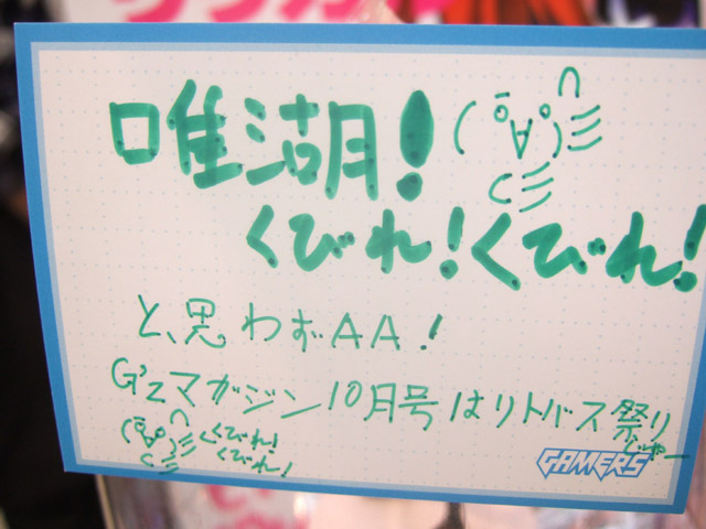 ゲーマーズ本店のPOPでは「唯湖!くびれ!くびれ!と、思わずAA!G’sマガジンマガジン10月号はリトバス祭りじゃー」とされていました。