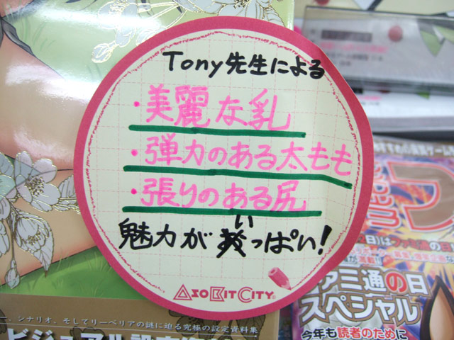 また、ゲームシティのPOPによると「Tony先生による 美麗な乳 弾力のある太もも 張りのあるお尻 魅力がおいっぱい!」とのことw