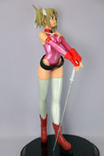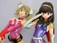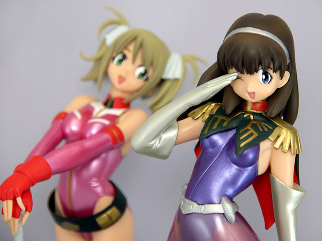 これは、カードビルダー0079の隠し秘書として、吉崎観音氏がデザインされたキャラクターの連邦クイーン「レイコ」とジオンクイーン「キャシー」をフィギュア化した、「ガンダムカードビルダー DXガールズフィギュア オペレーター」(参考レビュー)、「同 0083ver.」(参考レビュー)に続く、レイコは「セイラ・マス」制服カラー、キャシーは「キシリア」制服カラーにリペイントされた「Limited Ver.」(AM)の、レイコとキャシーのコスプレさんもいた、C3×HOBBY キャラホビ2007に設置されたクレーンゲーム限定でゲット可能だった、メタリック塗装版です。