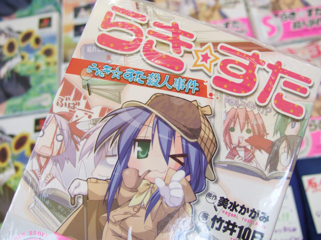 8月31日、角川スニーカー文庫らき☆すた殺人事件」(AA)が発売されました。これは、裏表紙の説明によると「原作者もびっくり」という、学校帰りに立ち寄った書店でおきた殺人事件を題材としたらき☆すたの小説。ゲーマーズ本店のPOPでは「ふっふっふぅ〜ww この私の「名推理」・・・・。とくと読むといい!!いや、アンタ表紙の探偵のカッコウしたかっただけじゃ byか○み」