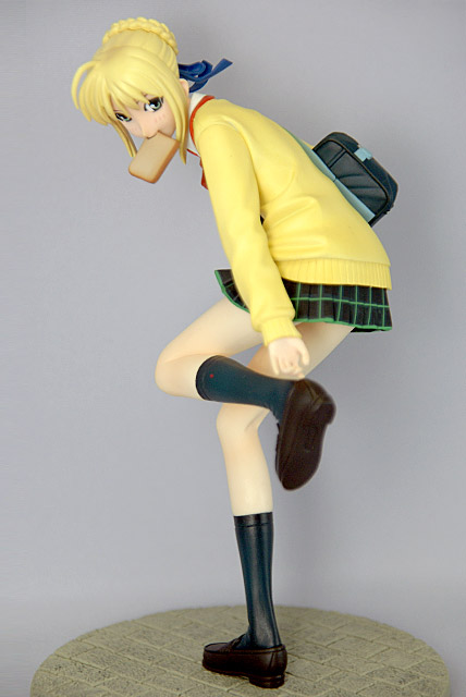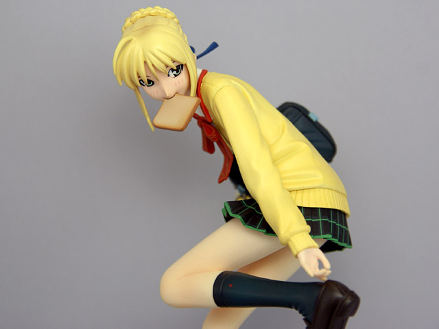 月刊ホビージャパン誌上通販限定「Fate/stay night 女子高生セイバー」のレビューです。実際の劇中には無かった、制服を着たセイバーが、お約束(?)のパンを加え玄関を出ようとしているポーズで立体化されたドリームフィギュアw 普段あまり見られない、ミニスカ姿で靴を履こうとしている姿なので、角度によっては当然幸せな光景が・・・w 無論スカートキャストオフ可能w