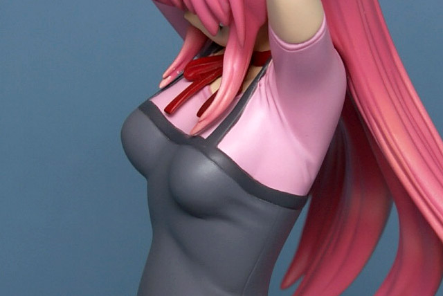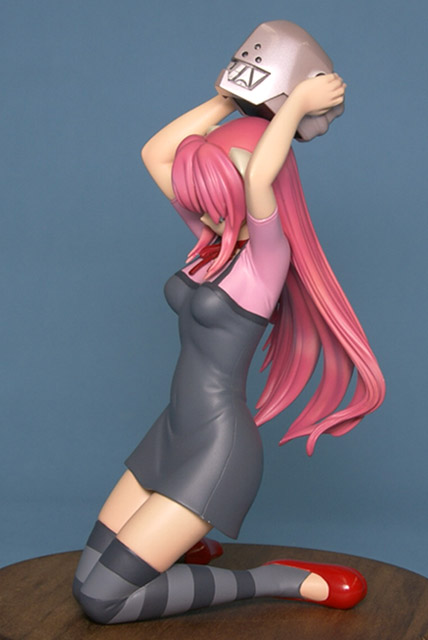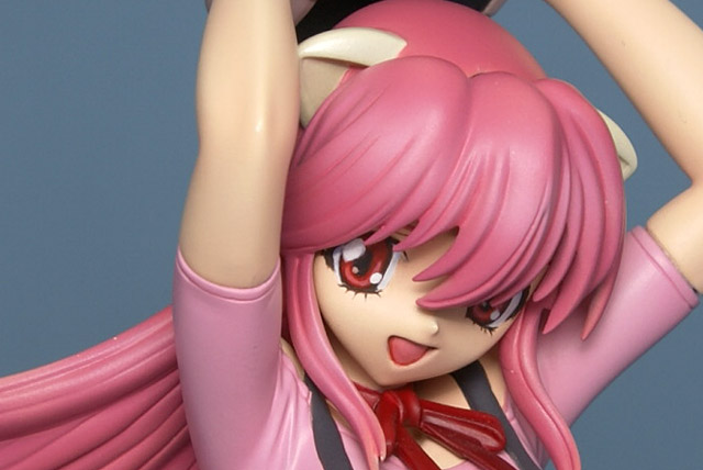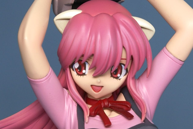 これは、「エルフェンリート」のキャラの一人「にゅう」を立体化したもので、ウェーブの商品説明によると「熱狂的な人気を誇った話題作「エルフェンリート」よりヒロイン「ルーシー」の別人格「にゅう」〜を〜製品化致しました。身も熱烈な ファンである、みすまる☆ましい氏が全身全霊を傾けて奇跡のフィギュア化を実現致しました。」と紹介されています。