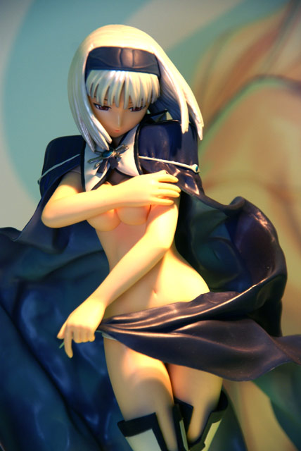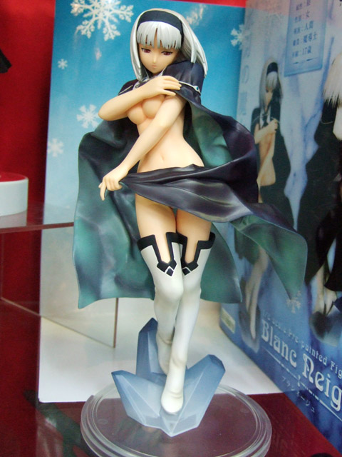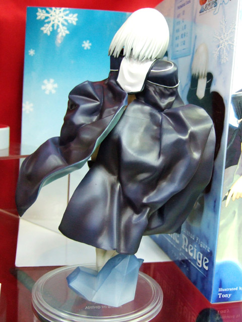 これは、ワンフェス2007夏のコトブキヤブースでも展示のあった、PS2「シャイニング・ティアーズ」のキャラ、「ブランネージュ」を立体化したもので、コトブキヤの商品説明によると『人気ゲームソフト「シャイニング・ティアーズ」より、氷刃の魔女ブランネージュが登場です。ビジュアル設定資料集の表紙を元に立体化しており、人気イラストレーターTony氏の描く繊細で美しいイラストを余すことなく忠実に再現しております。ポーズや表情など、セクシーさだけでない立体物としての美しさを是非御覧下さい。 』と紹介されています。