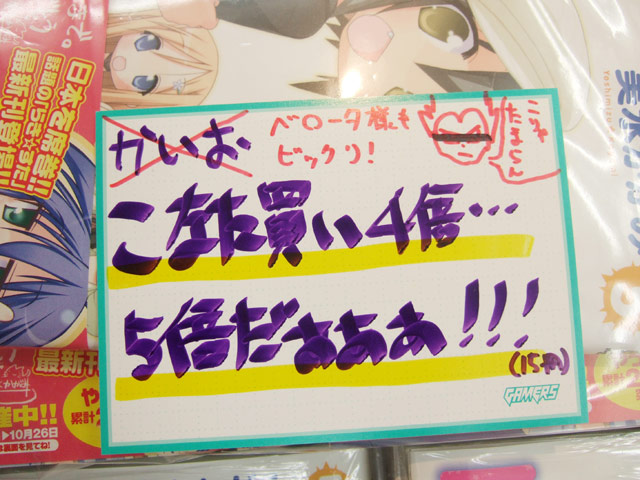 5Fでも大きく展開していて、『あやのちゃん・・・「マジカワイイっす!!」それが言いたくて、作っちゃいました・・・』という、やけに5巻表紙のあやのが目立つ巨大POPも。