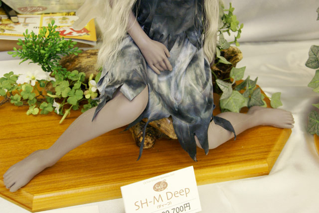 9月9日に開催された、WHF横浜DASH2のアルテトキオ(arte tokio)ブースでは、シーズ「Snow(スノー)」「Earth(アース)」「Deep(ディープ)」の3種のサンプル展示がされていました。これは、金属、プラスチックによる55パーツ構成の骨格を用いた、全高50cmのシームレスボディ(間接部分の露出しない柔らか素材のボディ)のシリコン製ドールなので、全裸で飾るのも可能w