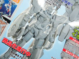 頭部アンテナは上下にずらすことで、スナイパー時のレンズオープンギミックを再現。大型シールドは機体前方でマントのようにクローズ形態も再現。上下3分割に分かれており、各パーツ単体でヒンジで可動。ライフル構え時にシールドクローズ形態でも一部を稼動させることでライフル構えが可能。付属武装:スナイパーライフル×1、大型シールド(両肩口横)×2、小型シールド×2、ビームサーベル×2(ツカのみ)
