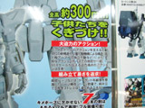 股関節には上下可動を可能とするダブルボールジョイントを使用。専用武装である大型ライフルを左右腕部に取り付け可能。肩機構部にはポリキャップを使用し、柔軟なさまざまなアクションポーズを再現可能。握り手は左右に対応×各1。左平手×1。細部カラー再現のためホイルシールが付属。付属武装:腕部ライフル×1、カーボンブレード×1