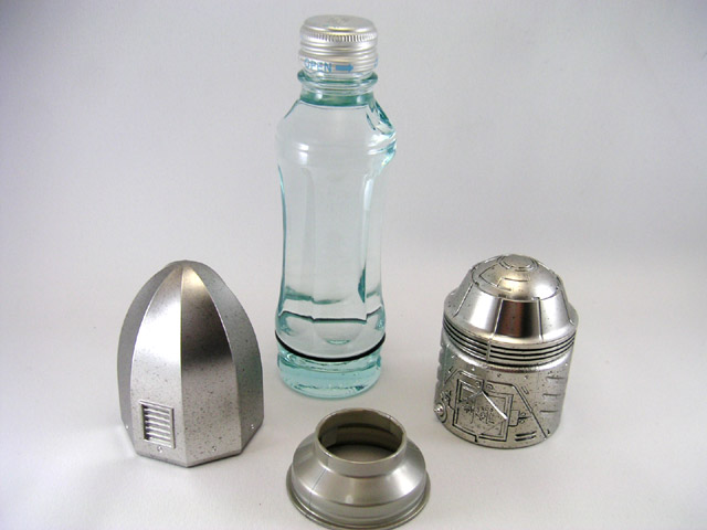 金属っぽい部分はプラ製で、ビンの部分はガラス製。