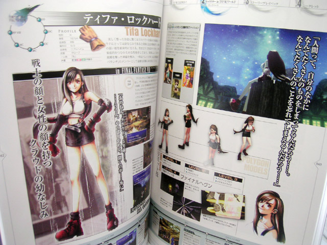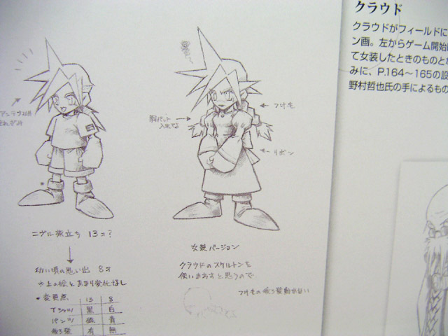 FF7シリーズを網羅し、インタビューなども掲載した特別編集版「ULTIMANIA」では、PS版FF7から、同時発売となった「CRISIS CORE FINAL FANTASY」(AA)など、FF7のコンピレーションシリーズのキャラクターやストーリーなどを網羅している他、ある意味貴重な(?)クラウド女装の原画や、開発陣のロングインタビューなど、かなり盛りだくさんで読み応えのある内容となっていました。