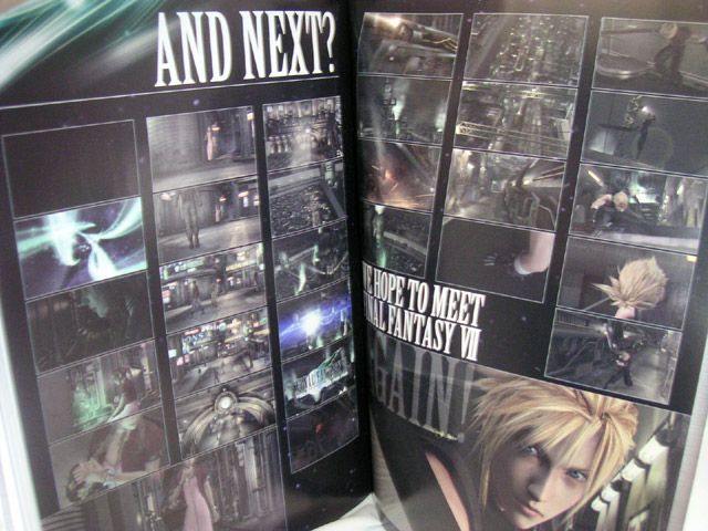 また、最後の方のページでは、PS3のデモンストレーションで製作されたFF7オープニングの映像の画像がちりばめられていて、そこに「AND NEXT? WE HOPE TO MEET FINAL FANTASY VII AGAIN!」とかかれていました。