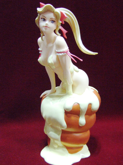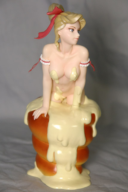 これは、ワンフェス2007冬等のあらあらこまった堂ブースで展示されていた、MAXやすひろ氏と原型師のモデラーT氏のコラボガレキ「クリーム・コル姉」を一部改修してPVC完成品にするもので、アオシマの商品説明によると「日本最大SNS「mixi」で出会ったイラストレーターと原型師が、一年の歳月をかけて製作したイベント限定品を、ファニーナイツが塗装済完成品として商品化!MAXやすひろ氏の描くかわいらしいコロネパンの妖精を、もでらーT氏の得意とする肌表現でエロかわいく立体化したフィギュアです。もちろんお楽しみコンバージョンパーツ付き!イベント限定品を、一部塗装済みPVC完成品用として改修してあります。 」と紹介されています。