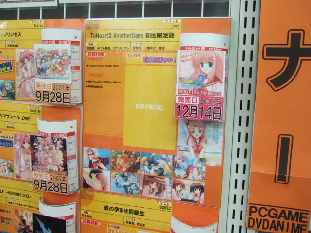 以前、予約特典告知展開等をお伝えした、Leaf「ToHeart2 AnotherDays」(AA)の予約が14日に解禁となり、アキバの各取扱店でもいっせいに予約受付が開始していました。