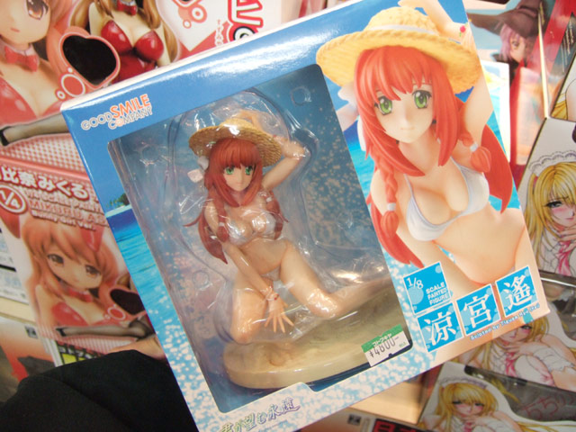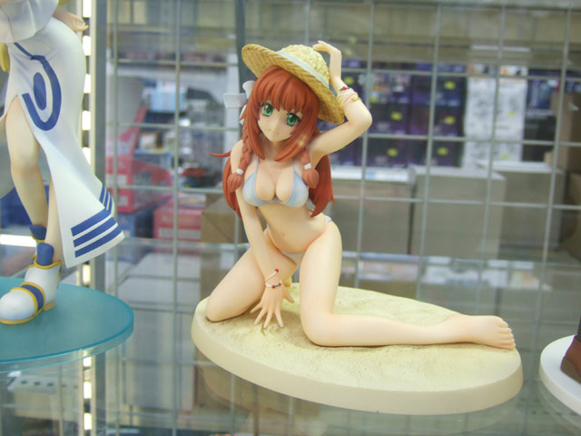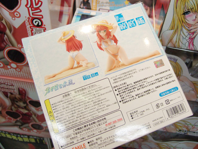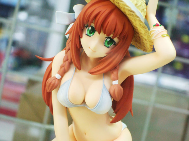これは、ドリームパーティ東京2007春等でサンプル展示もあった、「君が望む永遠」のキャラ「涼宮遙」を白ビキニ姿で立体化したもので、グッスマの商品説明によると「『君のぞ』から、遂にPVC完成品登場!!人気PCゲームブランド「アージュ」の出世作『君が望む永遠』よりメインヒロインのひとり「涼宮 遙」が初PVC完成品となって発売です。イベント限定の人気キットを元に、本編では見る事の出来なかった健康的なビキニ姿をPVC化。砂浜をイメージした台座の上で、ボディーラインを際立たせるポージングで微笑みます。質感を意識した造形が、彼女の魅力をより一層引き立てます。」と紹介されています。