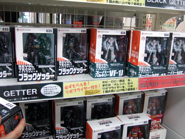 毎月15日はリボルテックの日。ということで今月も海洋堂 リボルテックヤマグチ「No.34 TV版 スーパーバルキリーVF-1J」(AA)と「No.35 OVA版 ブラックゲッター(真ゲッターロボ)」(AA)の2種が15日に海洋堂ホビーロビーで発売となりました。