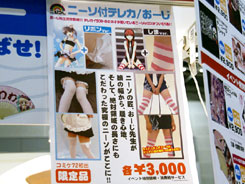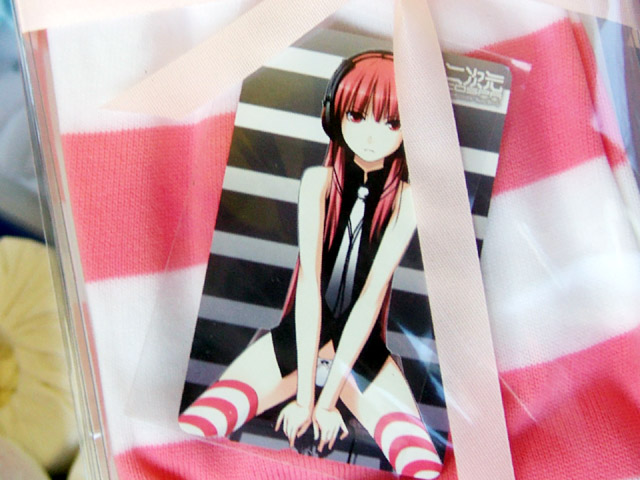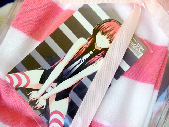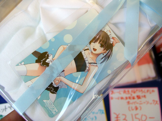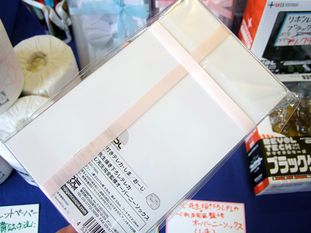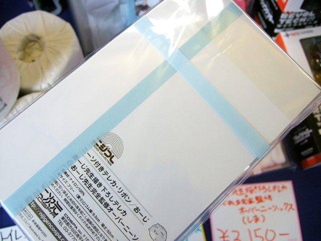 雫石きゅんきゅんトイレットペーパー同様、コミケ72先行販売された、コスパ ニーソ付きテレカ おーじ「しま / しま」「リボン / リボン」の2種がゲーマーズ本店にて発売されました。これは、おーじ氏イラストのニーソをはいたテレカと、そのイラストの女の子が着用しているニーソ現物がセットになった、「しまぱん付きテレカ」に続く、おーじ氏プロデュースのセットアイテム第2弾。